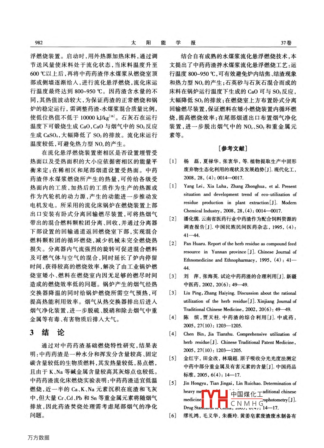 中药药渣拌水煤浆混烧工艺研究