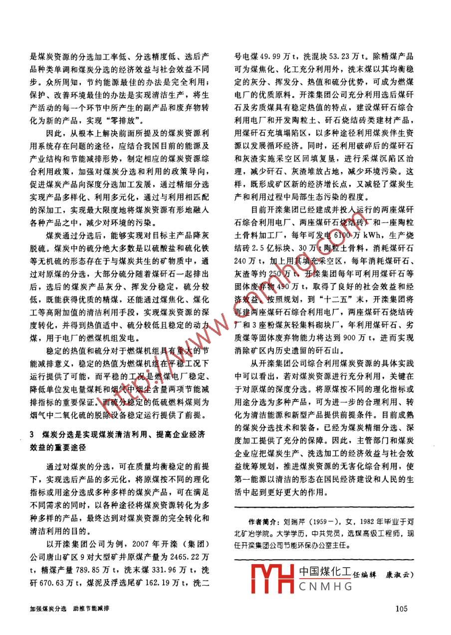 加强煤炭分选助推节能减排