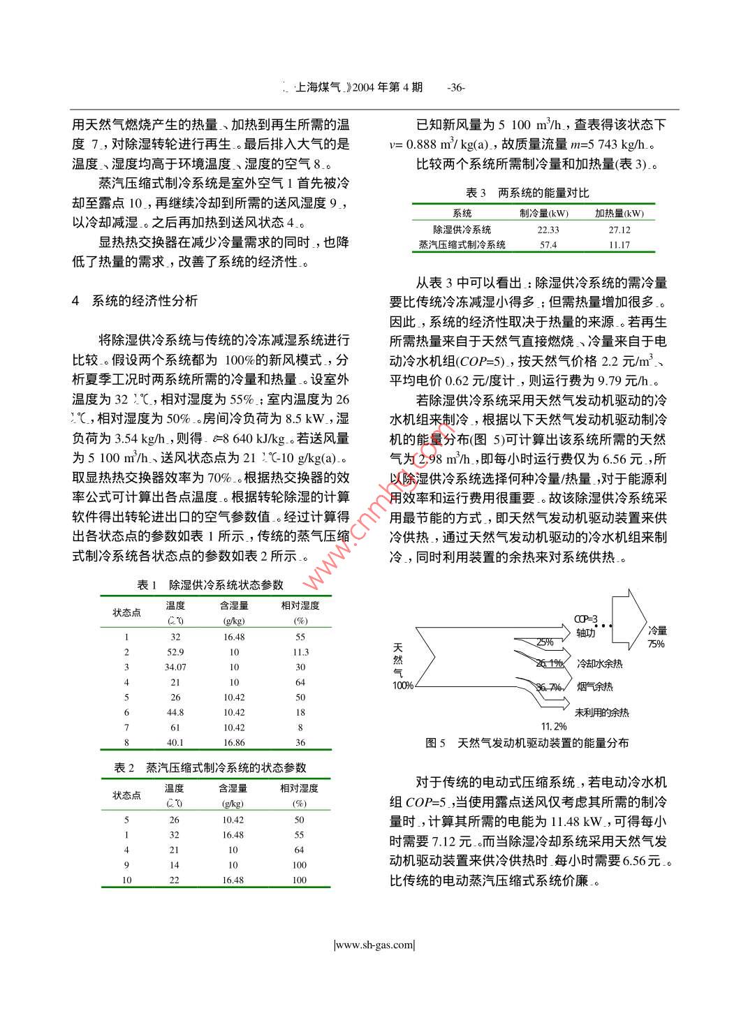 使用天然气的除湿供冷系统