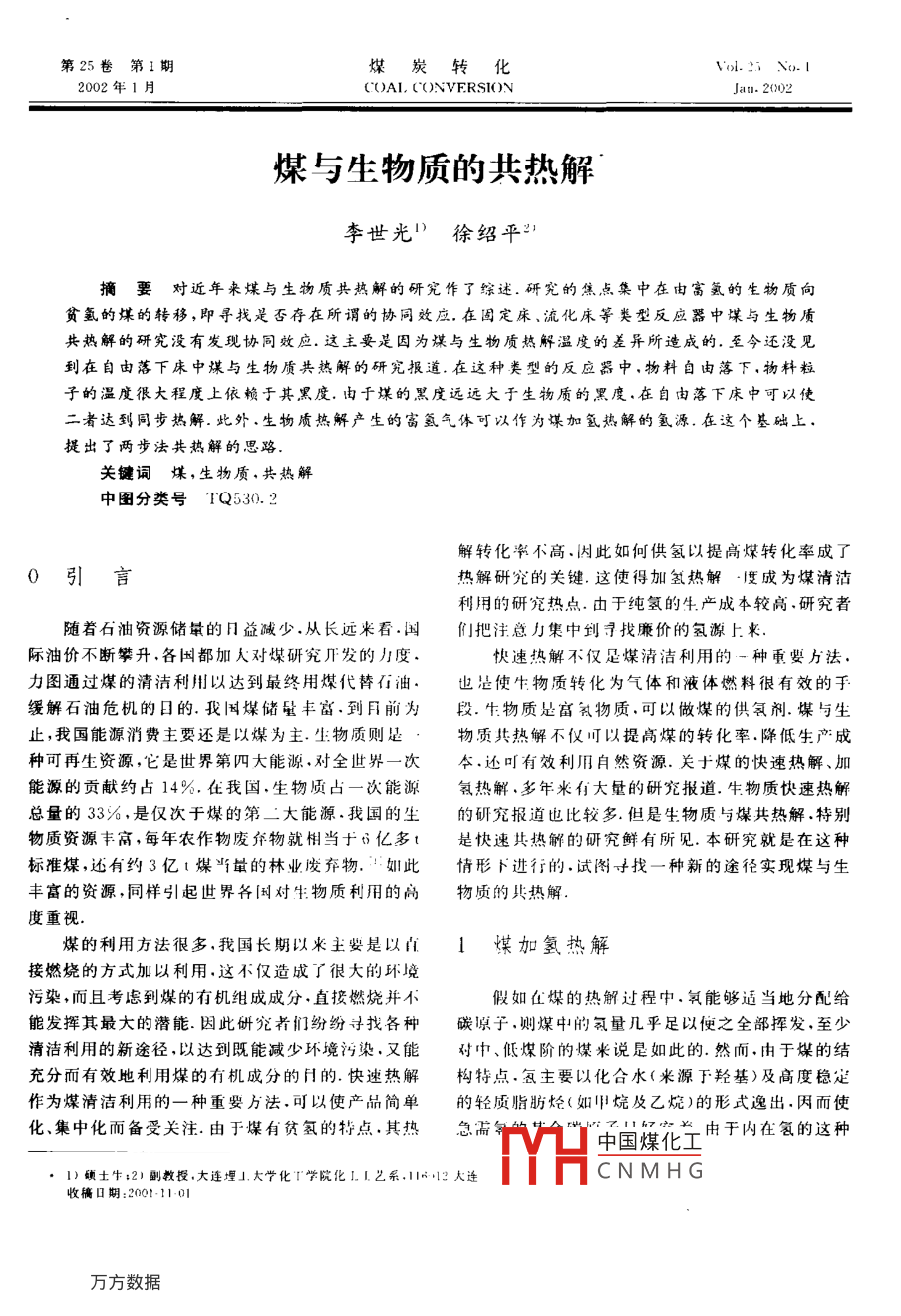 煤与生物质的共热解