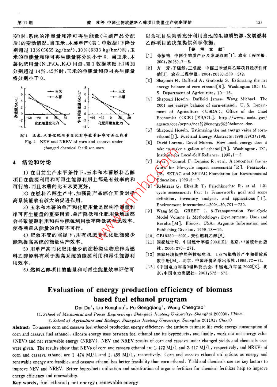 中国生物质燃料乙醇项目能量生产效率评估