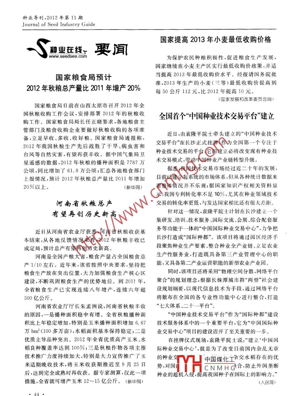 - 期刊名字:种业导刊