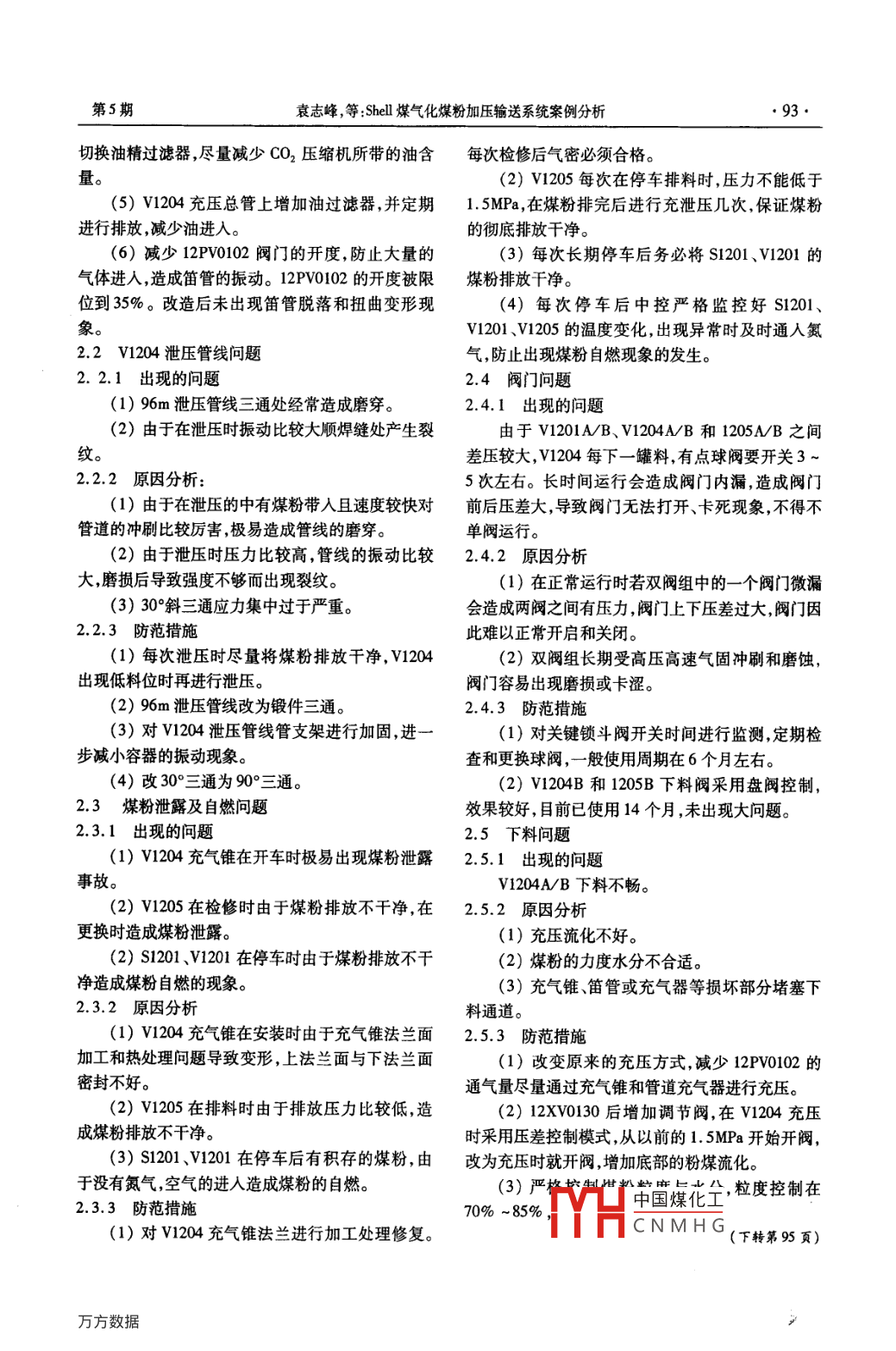 Shell煤气化煤粉加压输送系统案例分析