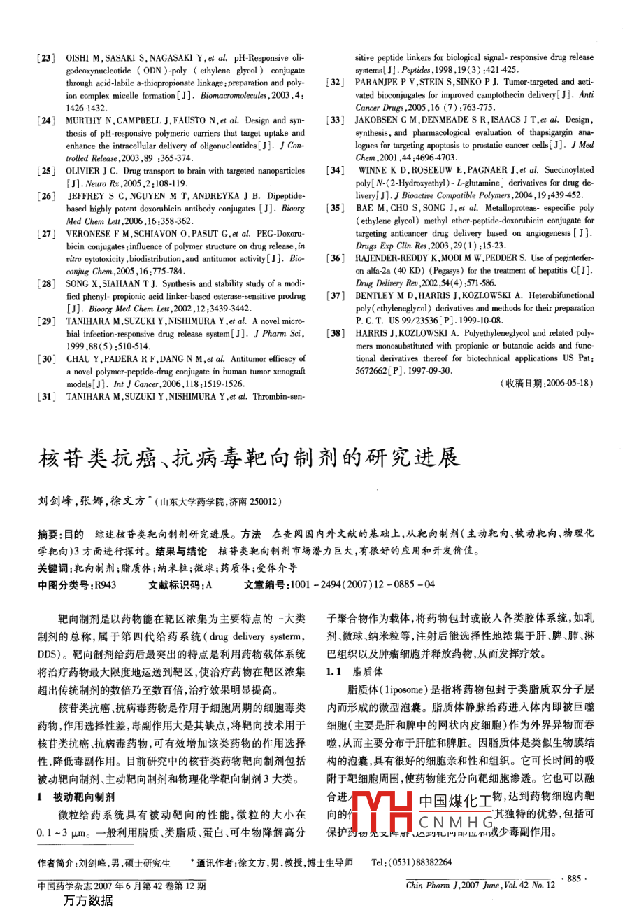 - 期刊名字:中国药学杂志