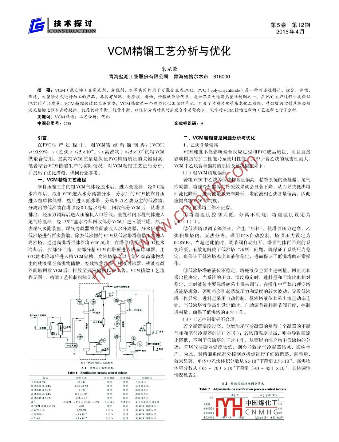 VCM精馏工艺分析与优化