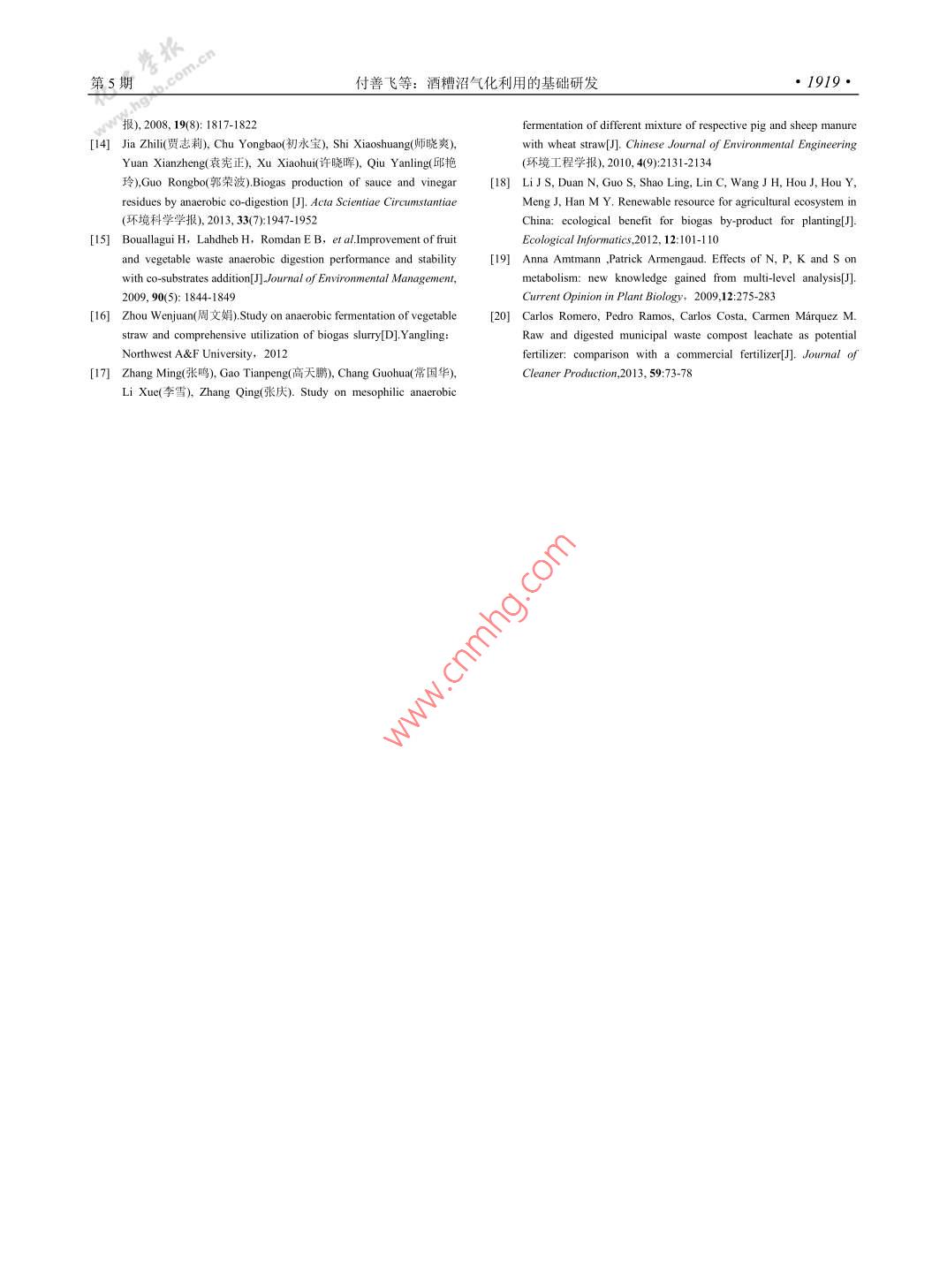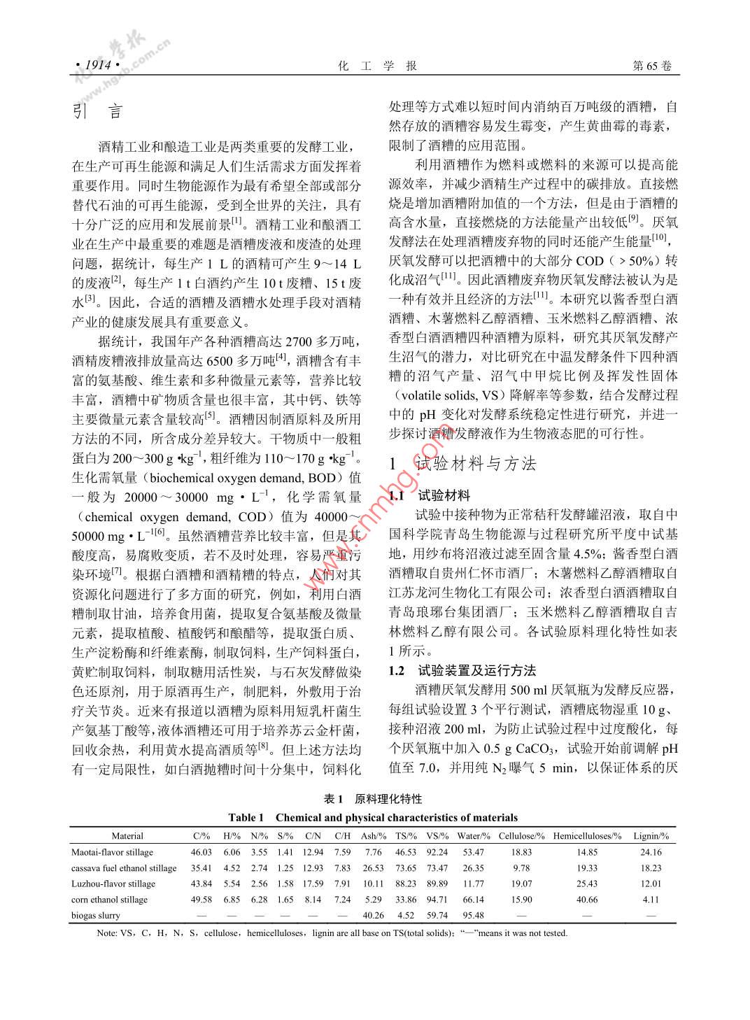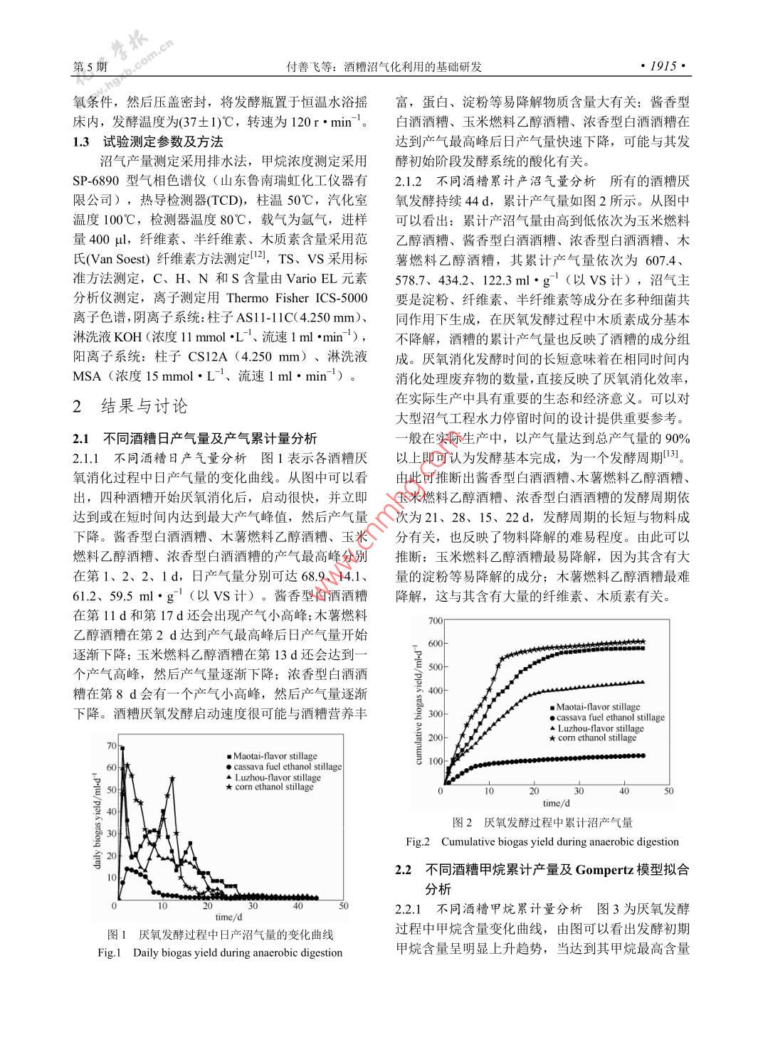 酒糟沼气化利用的基础研发
