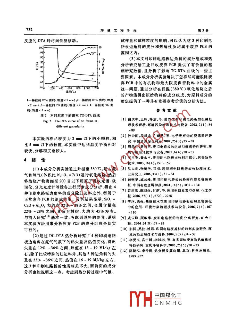 PCB边角料的成分与热重-差热分析研究