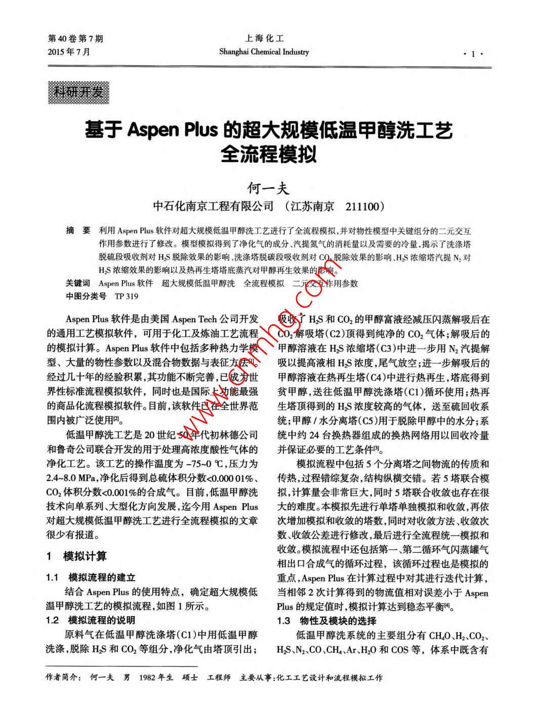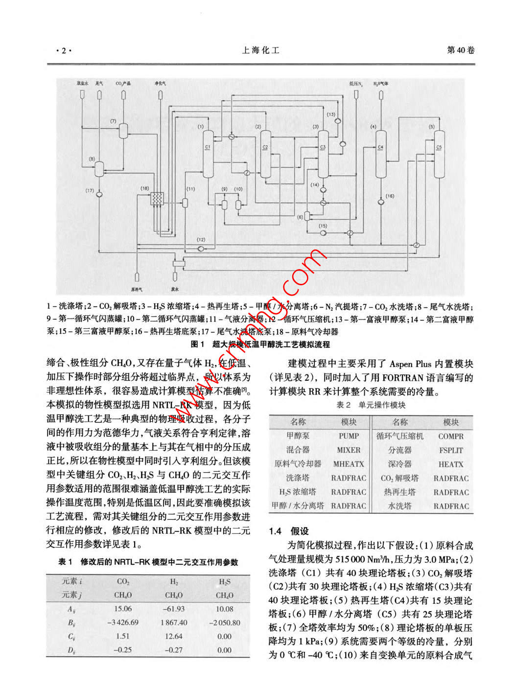 基于Aspen Plus的超大规模低温甲醇洗工艺全流程模拟