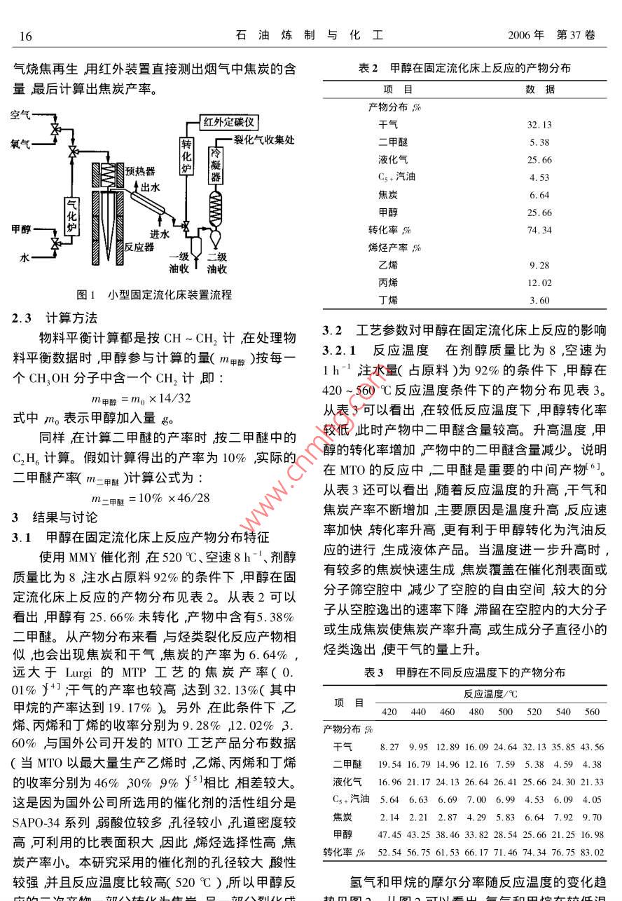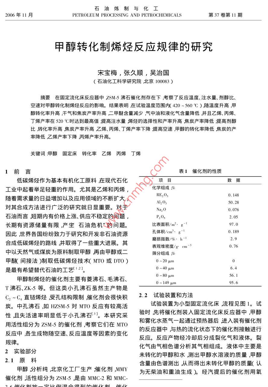 甲醇转化制烯烃反应规律的研究