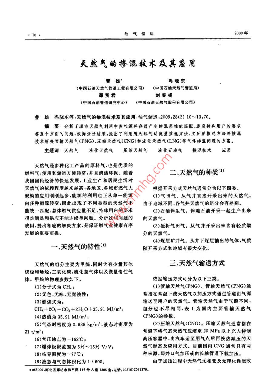 天然气的掺混技术及其应用