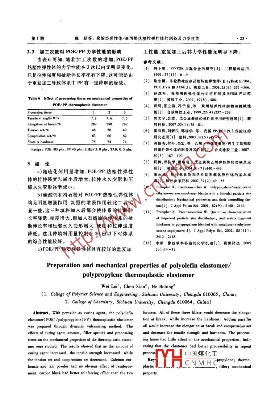 聚烯烃弹性体/聚丙烯热塑性弹性体的制备及力学性能