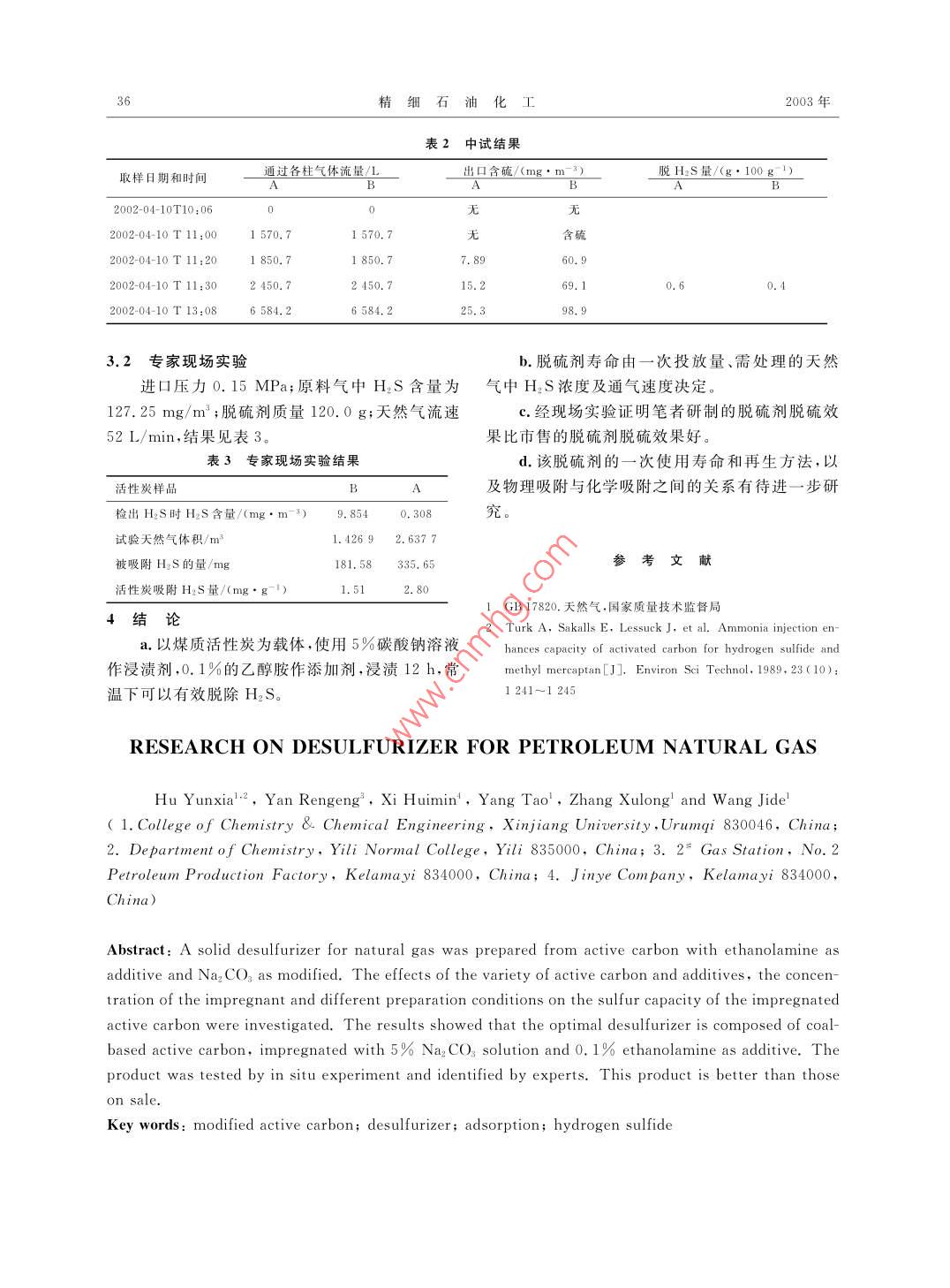 雷竞技世界杯手机登录 天然气脱硫剂的研究