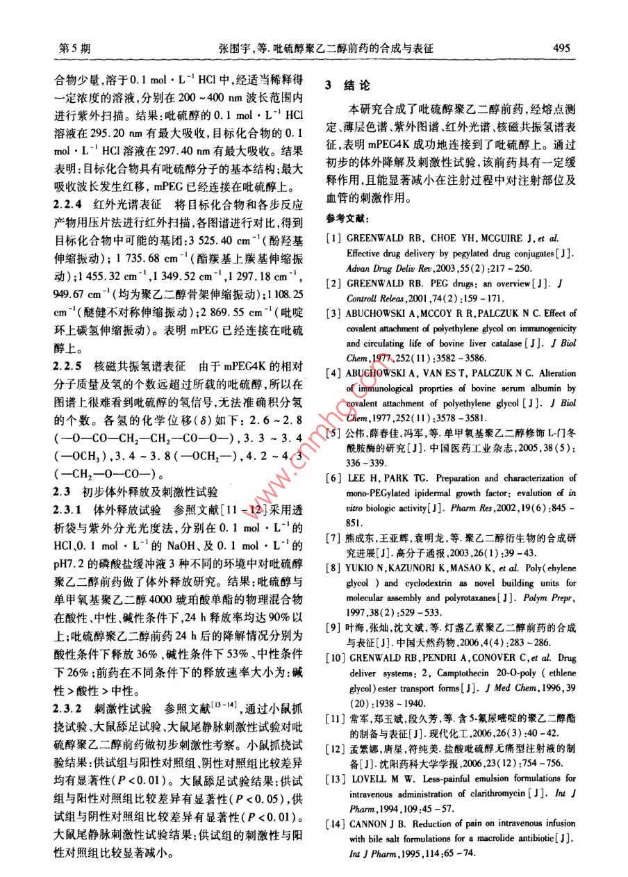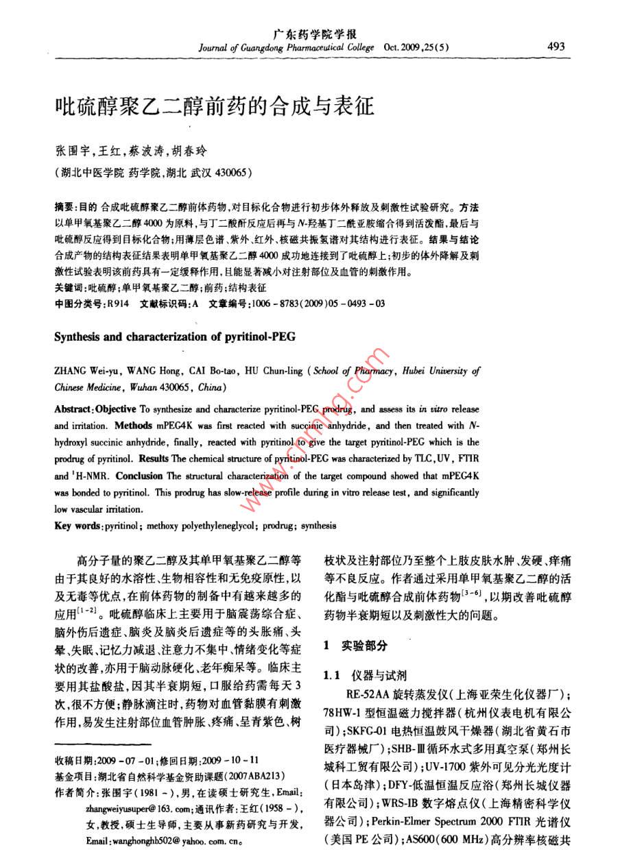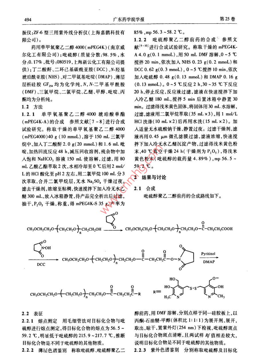 吡硫醇聚乙二醇前药的合成与表征