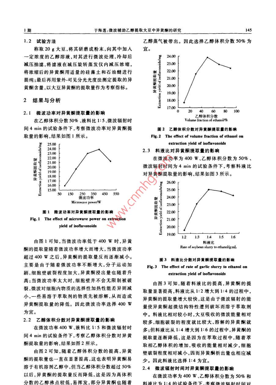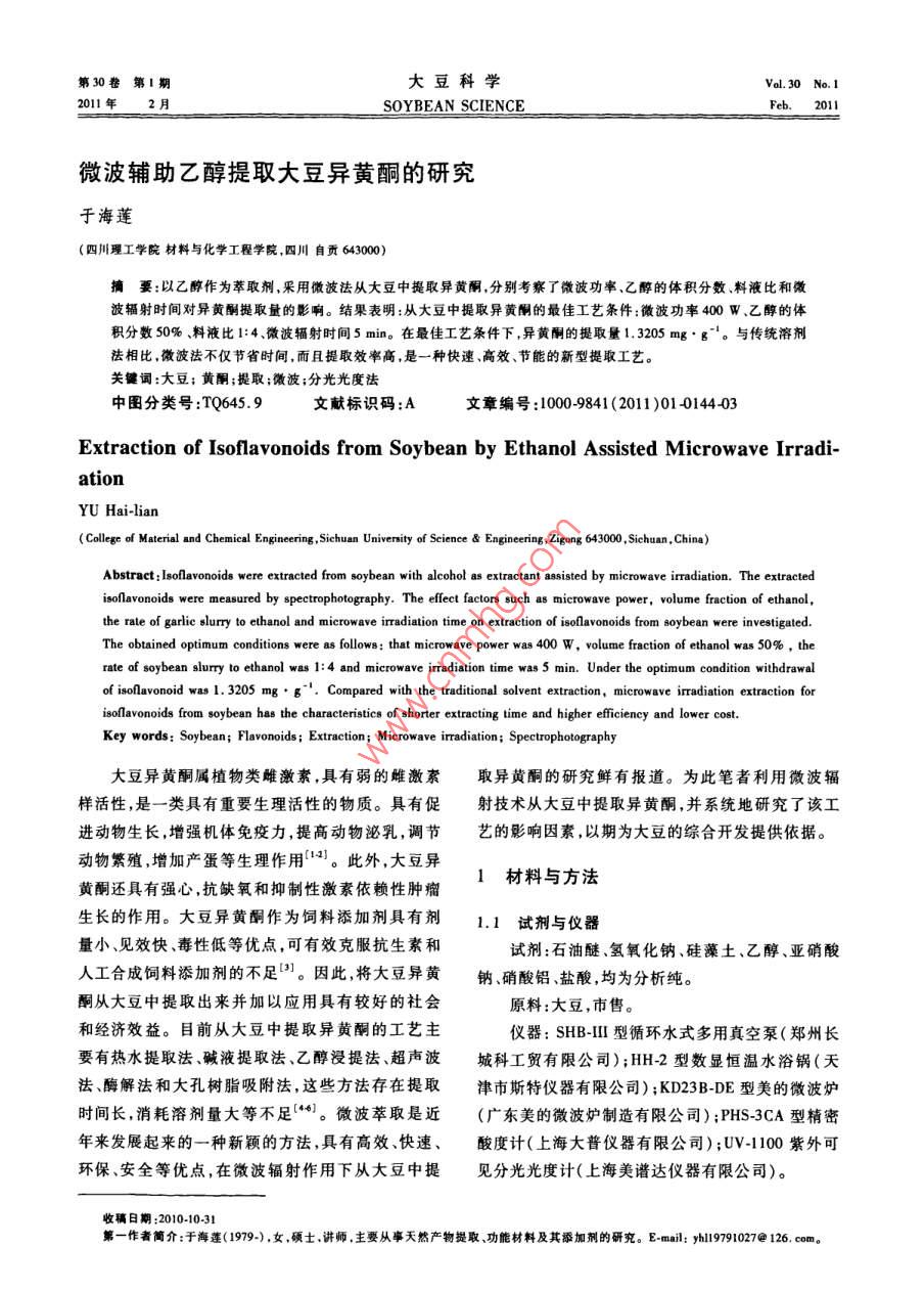 微波辅助乙醇提取大豆异黄酮的研究