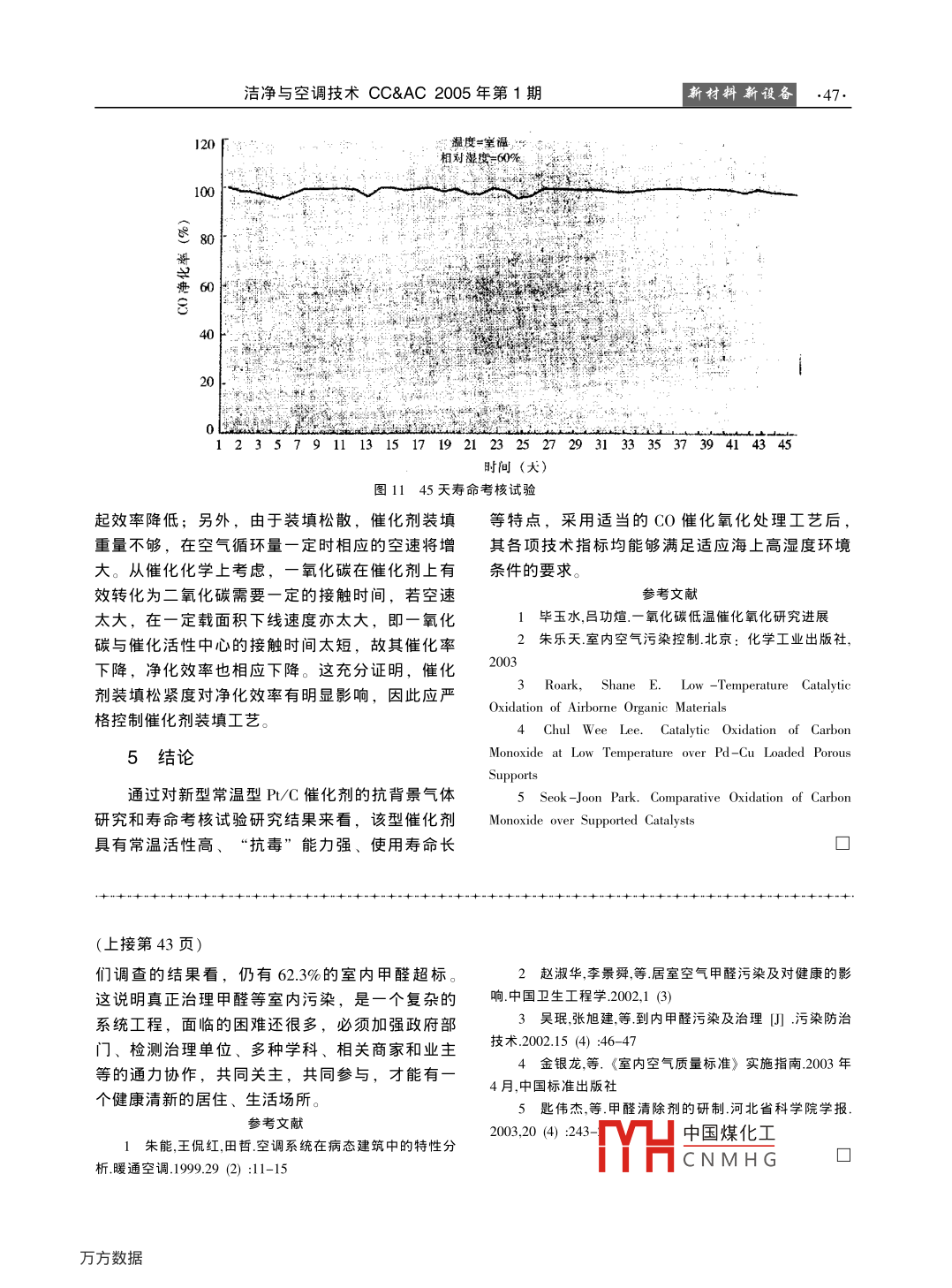 常温型Pt/C催化剂的催化氧化试验研究