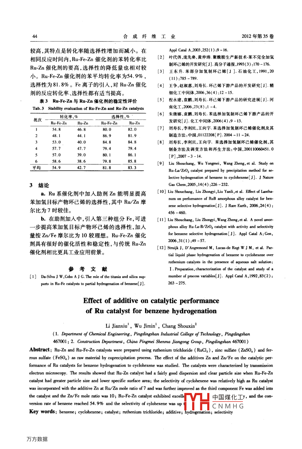 助剂对苯加氢 Ru 系催化剂催化性能的影响