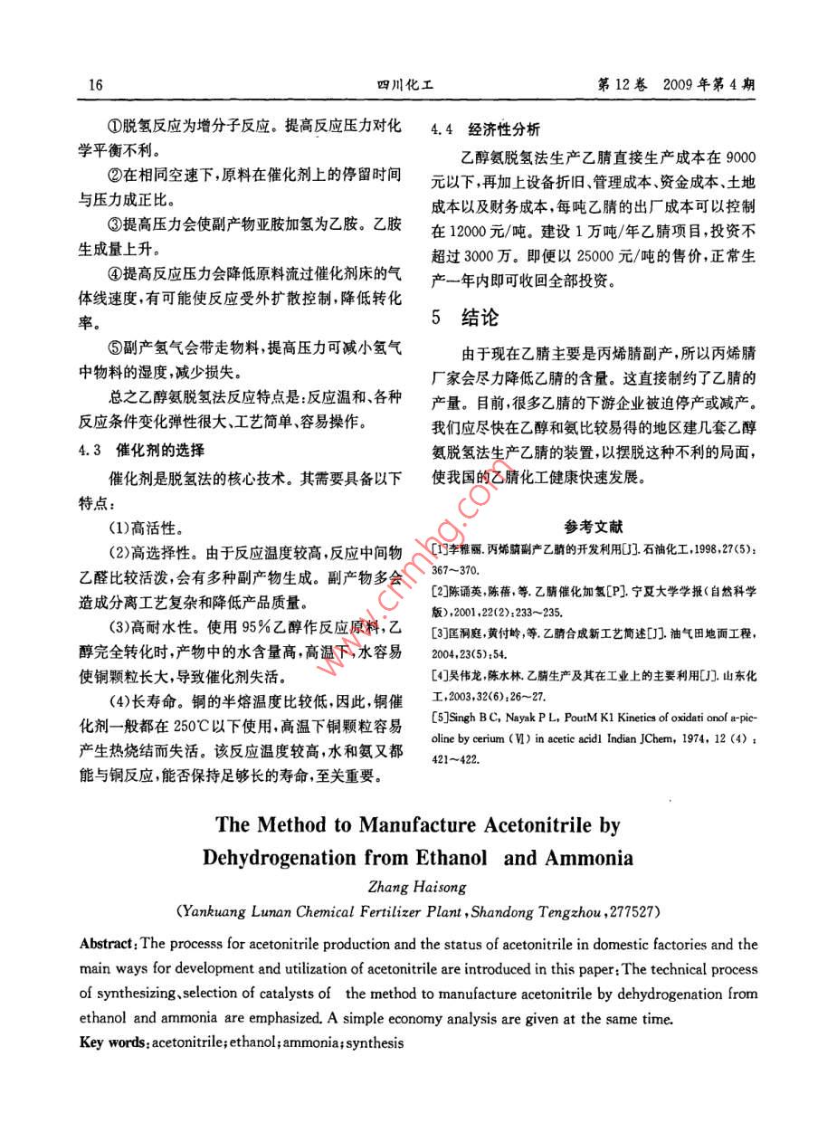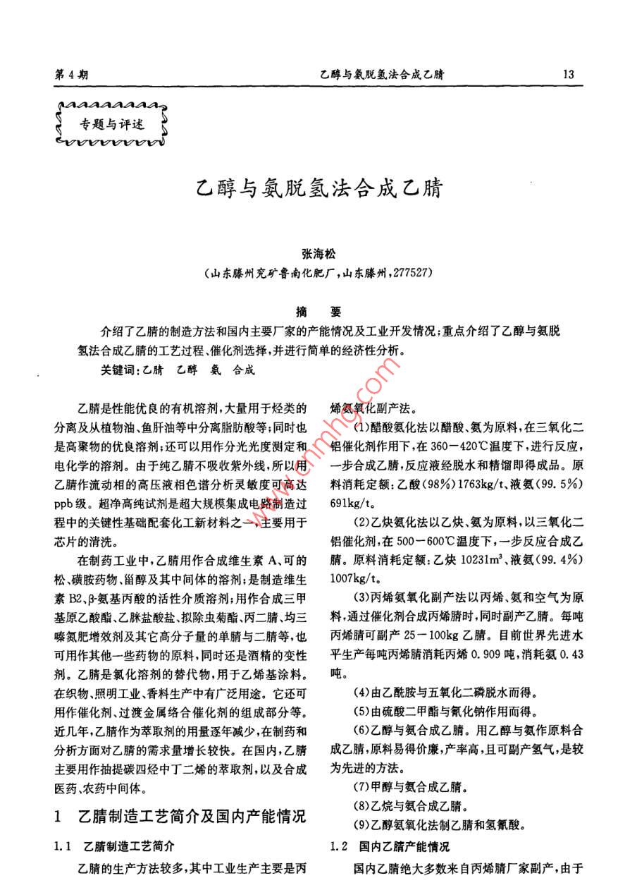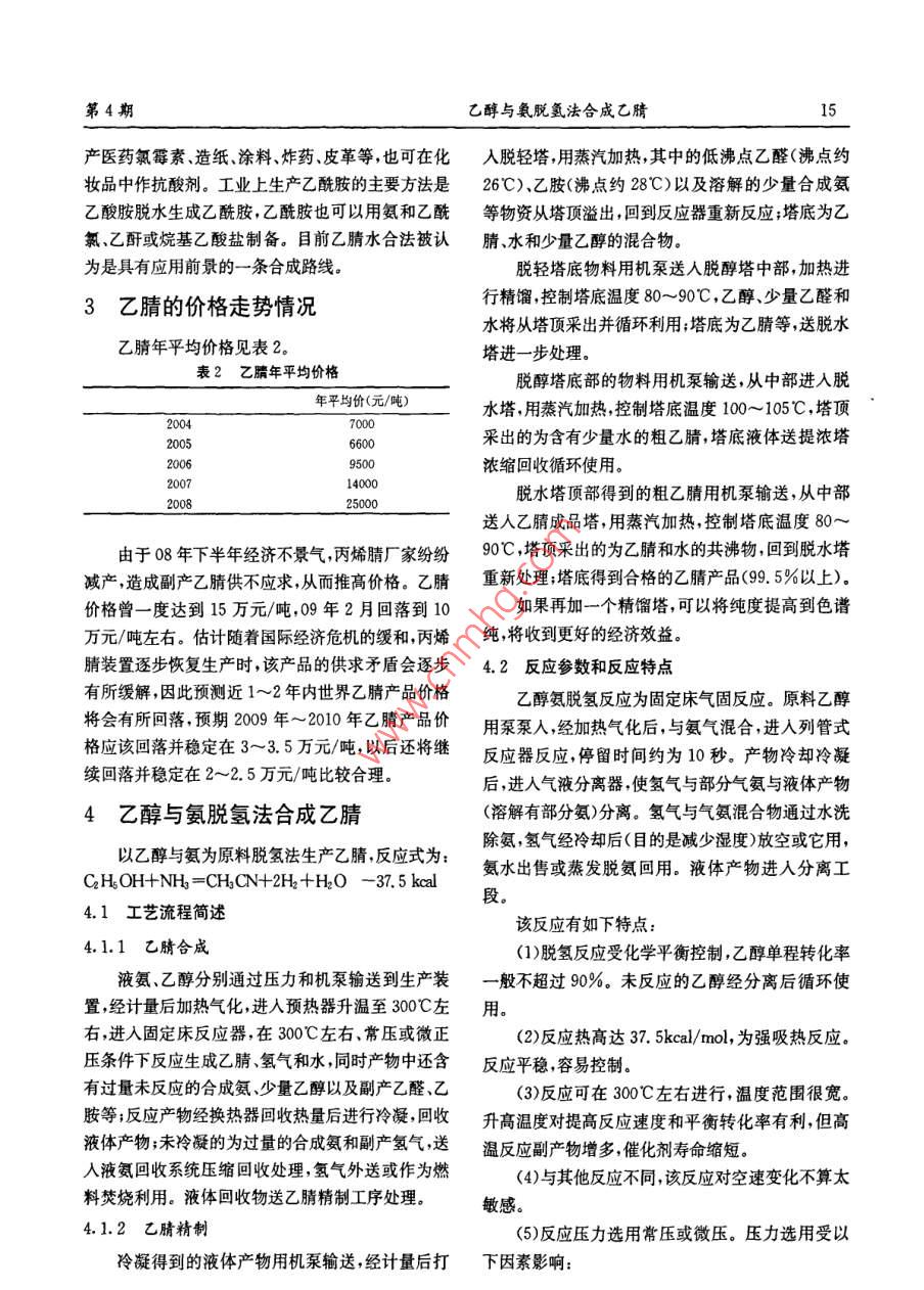 乙醇与氨脱氢法合成乙腈