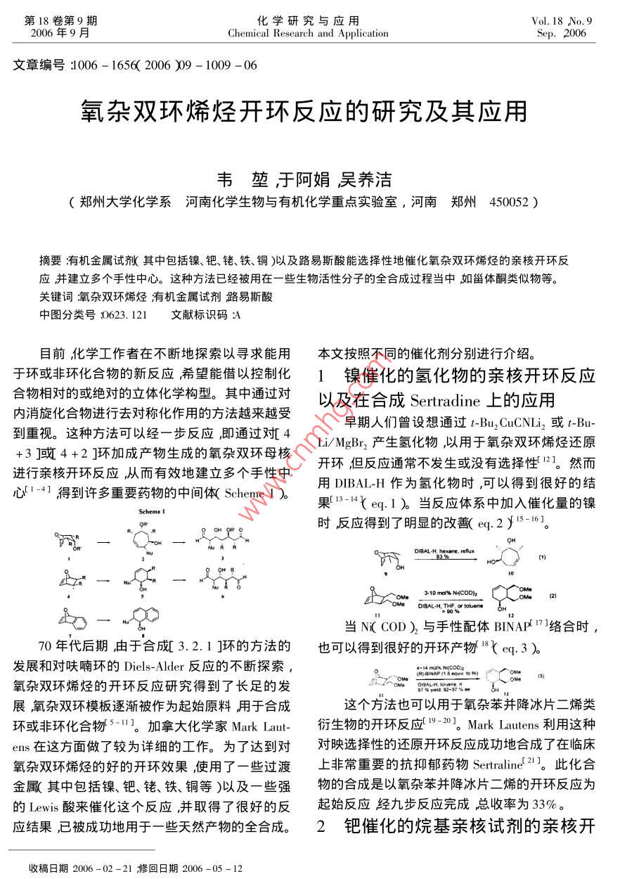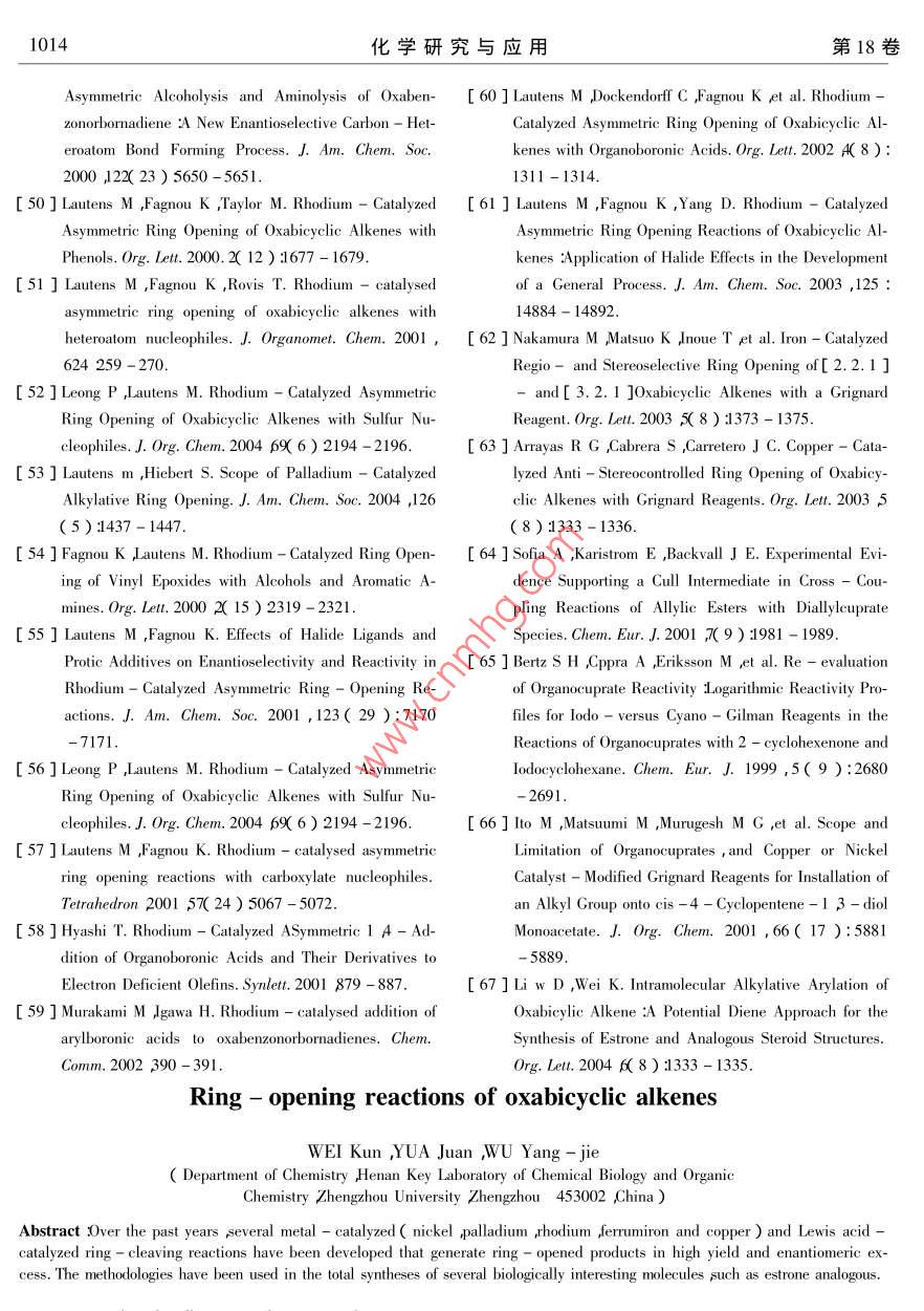 - 期刊名字:化学研究与应用