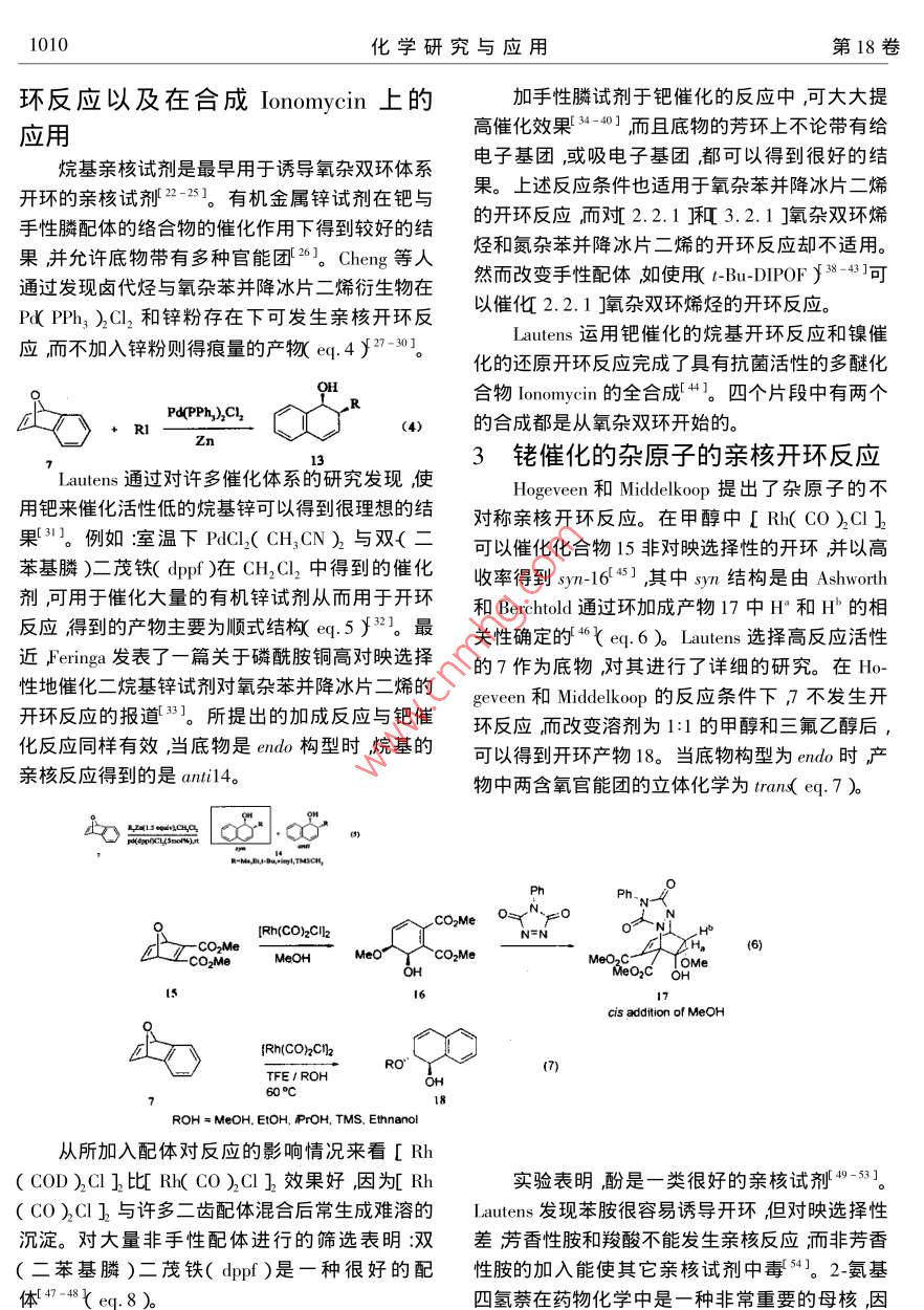 氧杂双环烯烃开环反应的研究及其应用