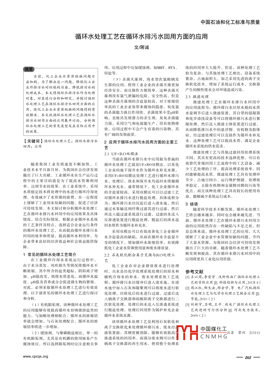 循环水处理工艺在循环水排污水回用方面的应用