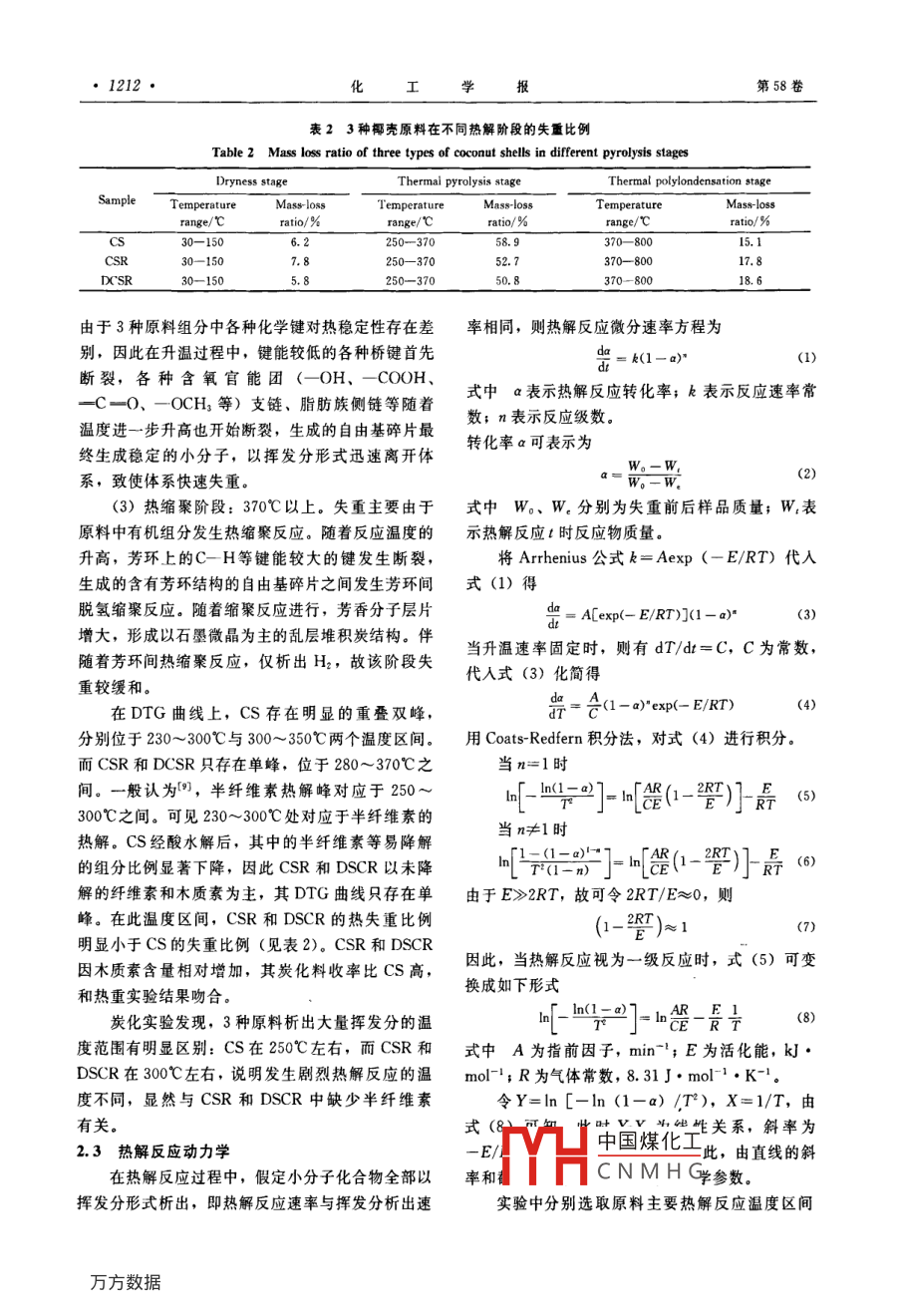 椰壳、椰壳渣与脱灰椰壳渣热解及热解动力学