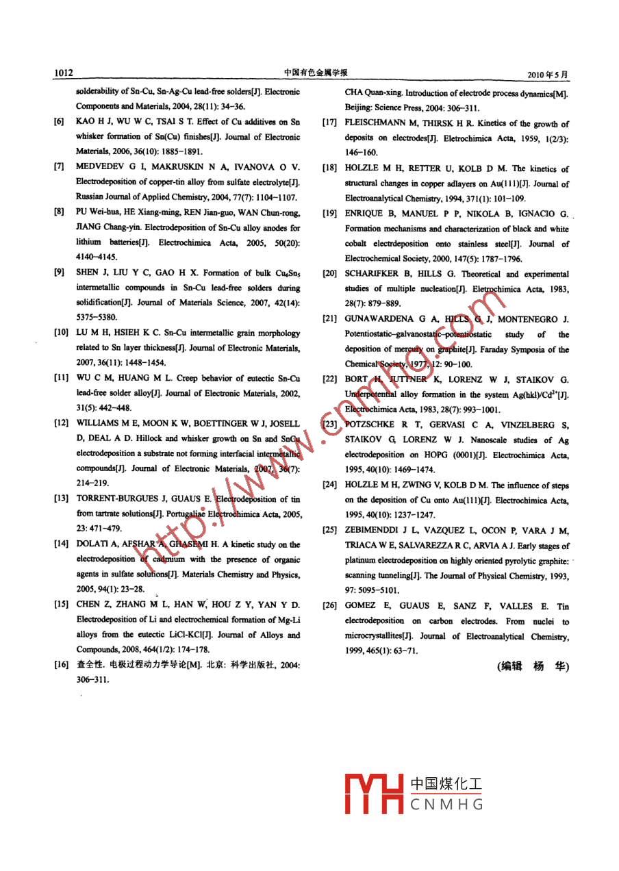 Sn-Cu合金的电沉积行为及添加剂的影响