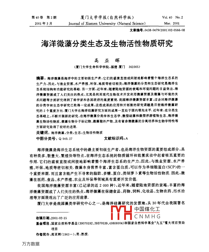 海洋微藻分类生态及生物活性物质研究
