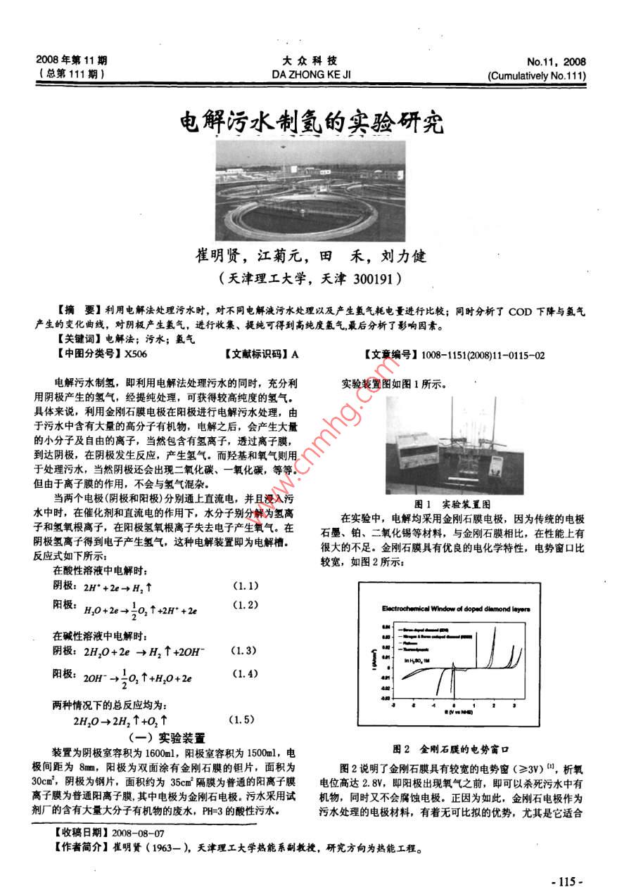 电解污水制氢的实验研究