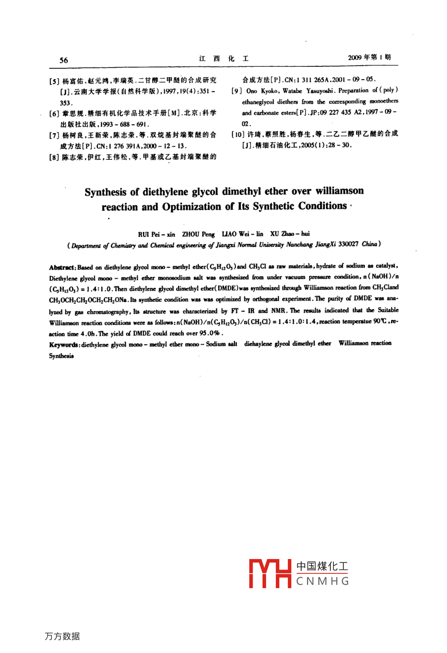 Williamson反应合成二乙二醇二甲醚及其合成条件优化