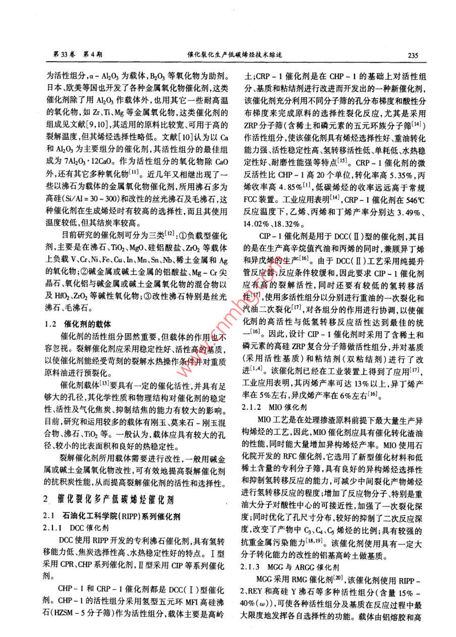 催化裂化生产低碳烯烃技术综述Ⅱ.增产低碳烯烃催化剂