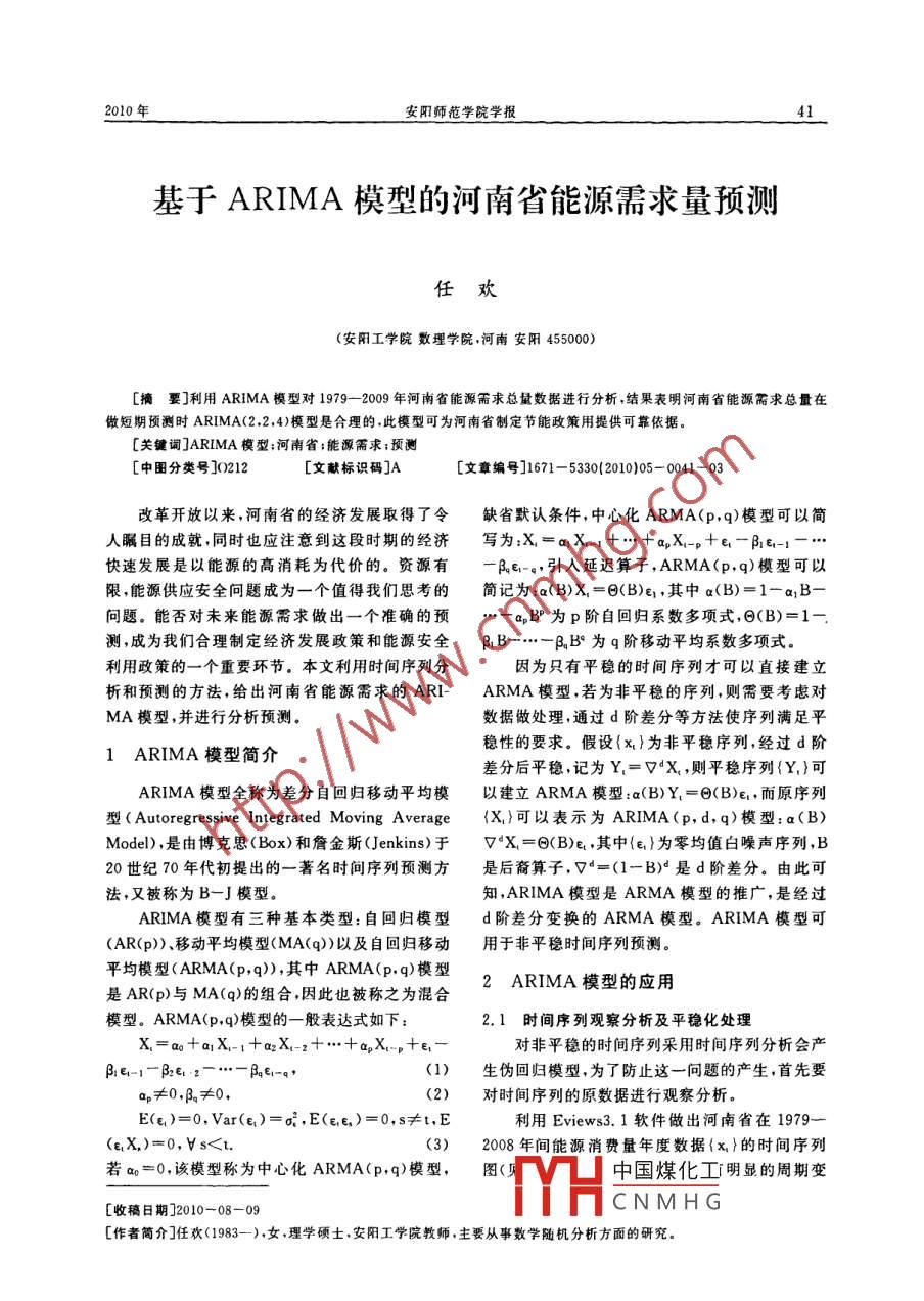 基于ARIMA模型的河南省能源需求量预测