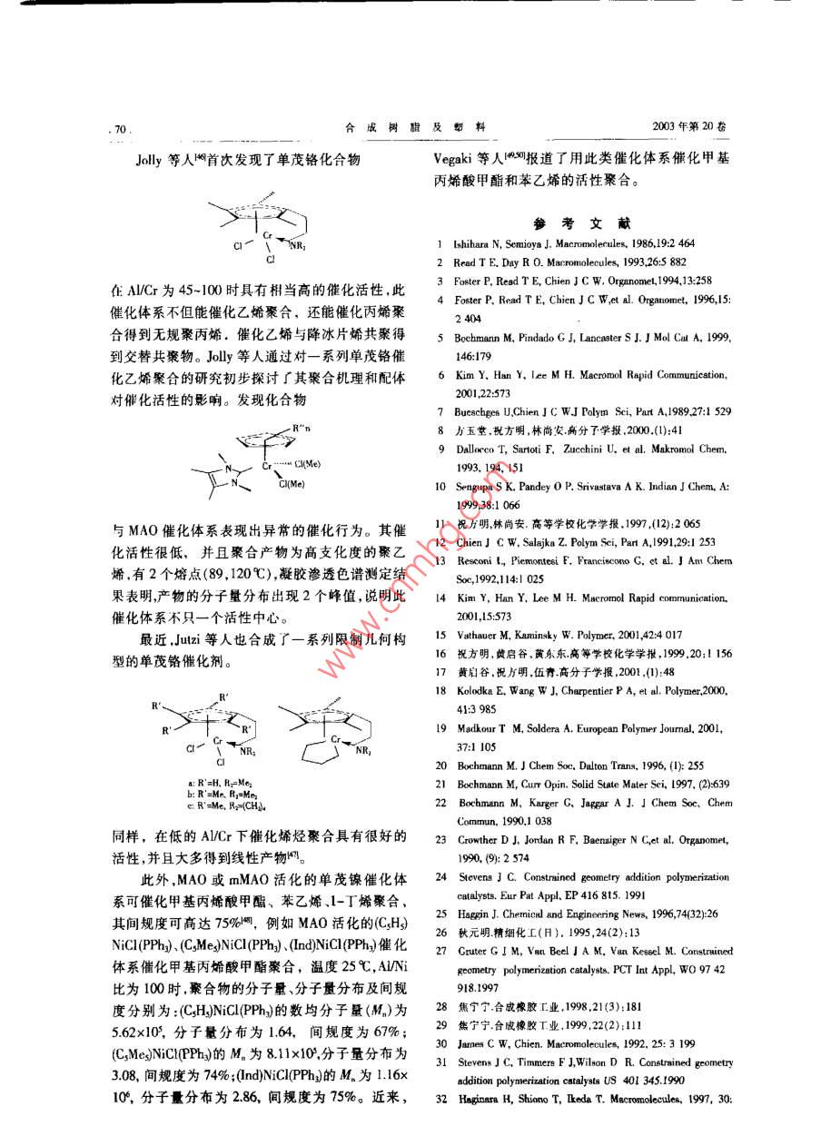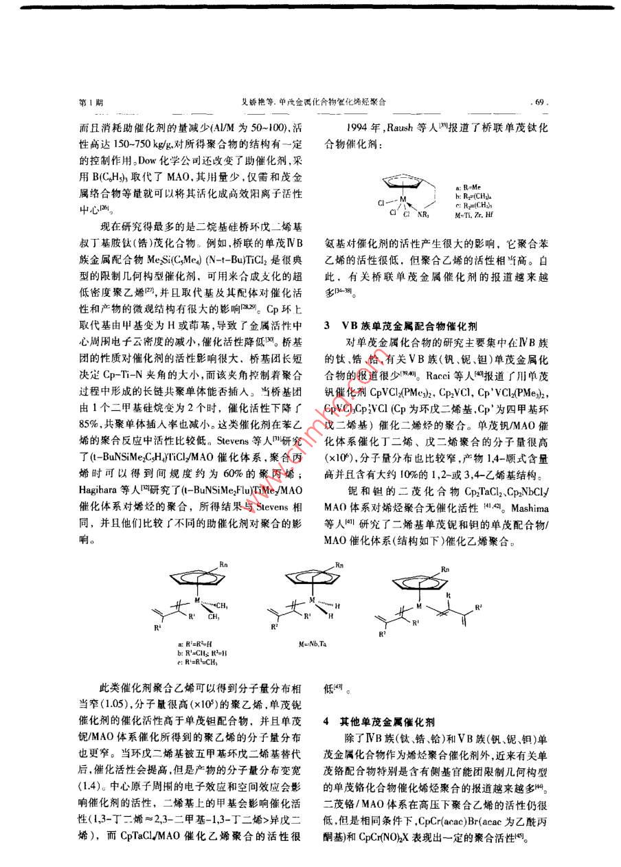 单茂金属化合物催化烯烃聚合