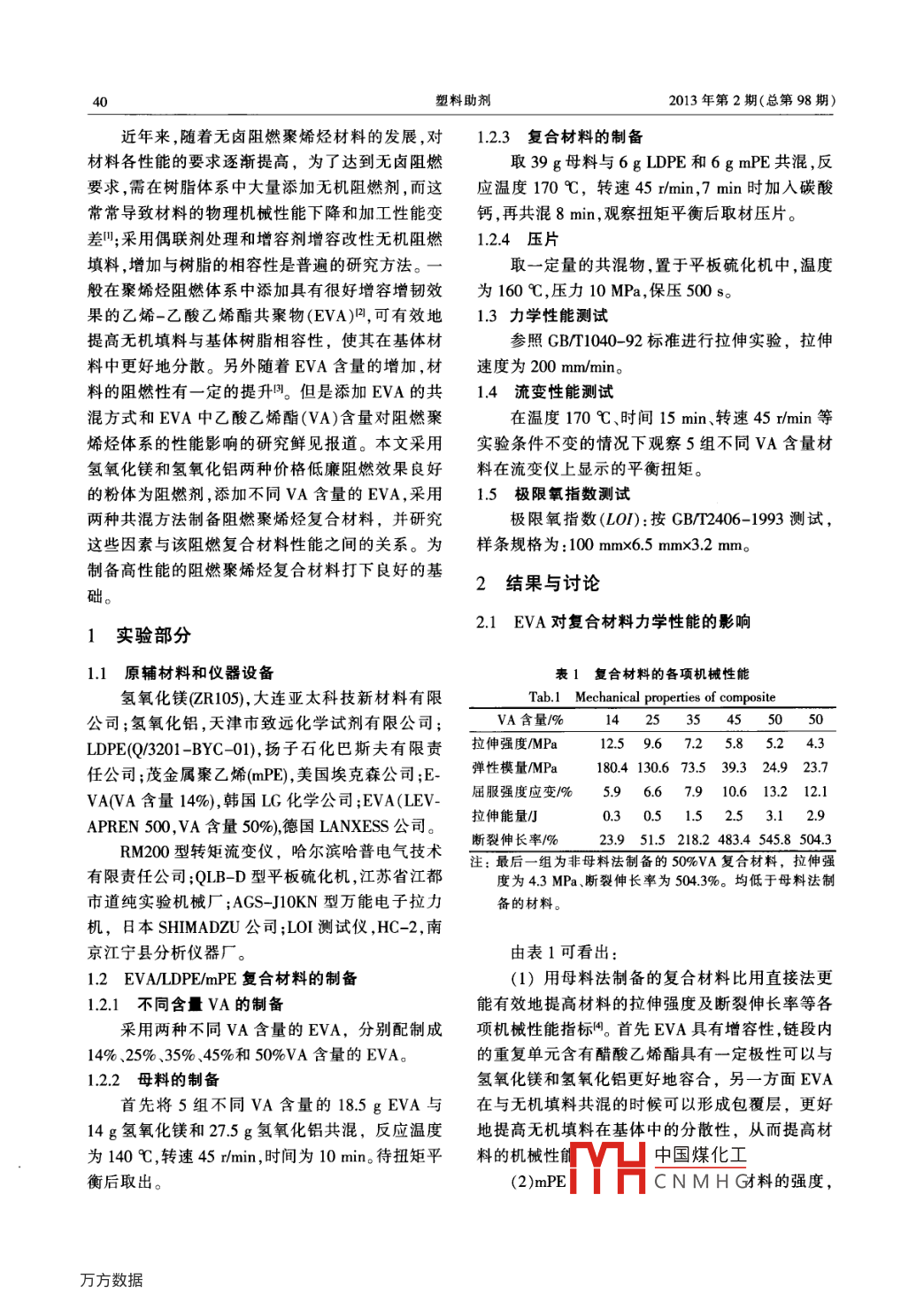 EVA对无卤阻燃聚烯烃复合材料性能的影响