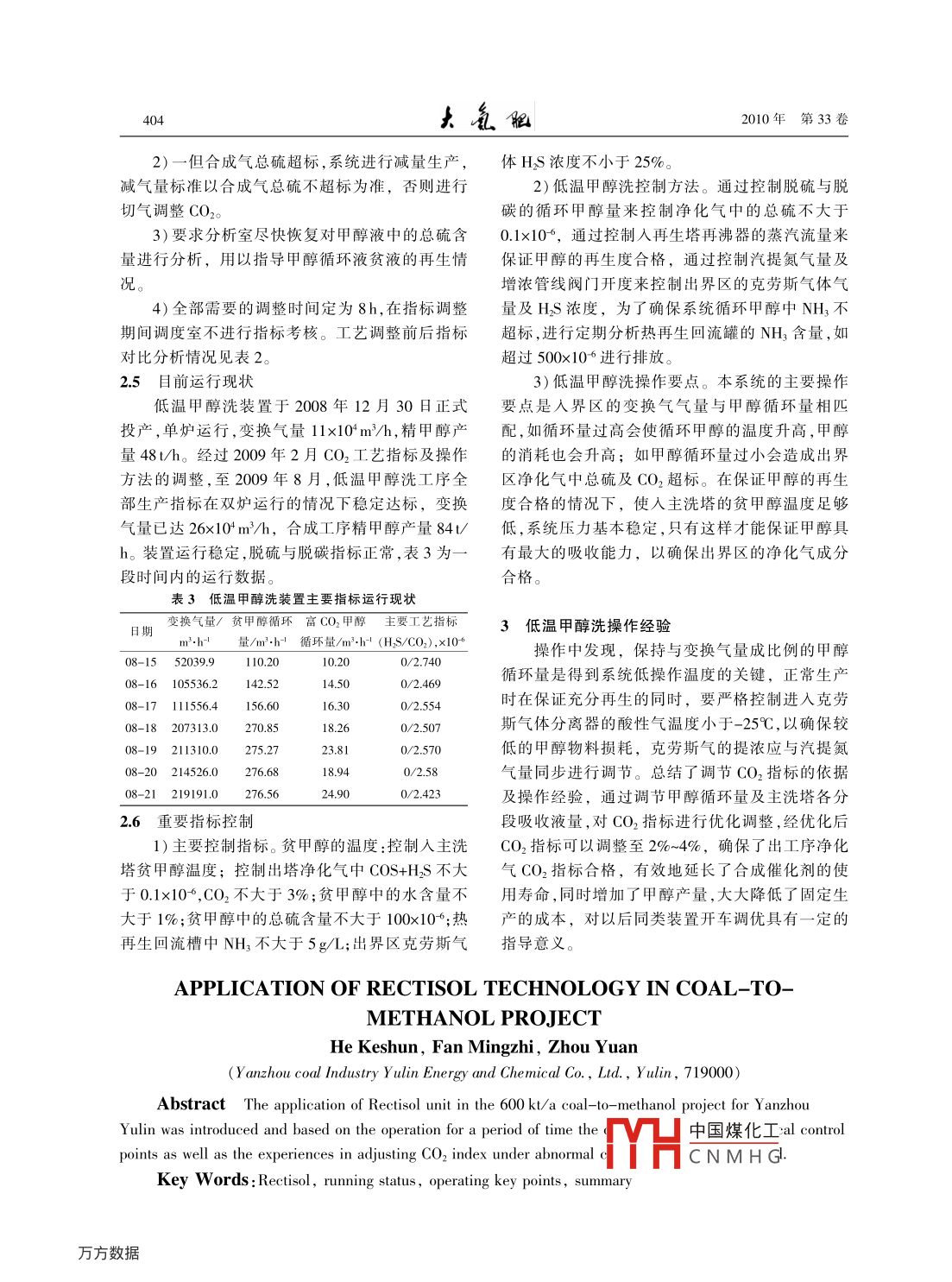 低温甲醇洗技术在煤制甲醇项目中的应用