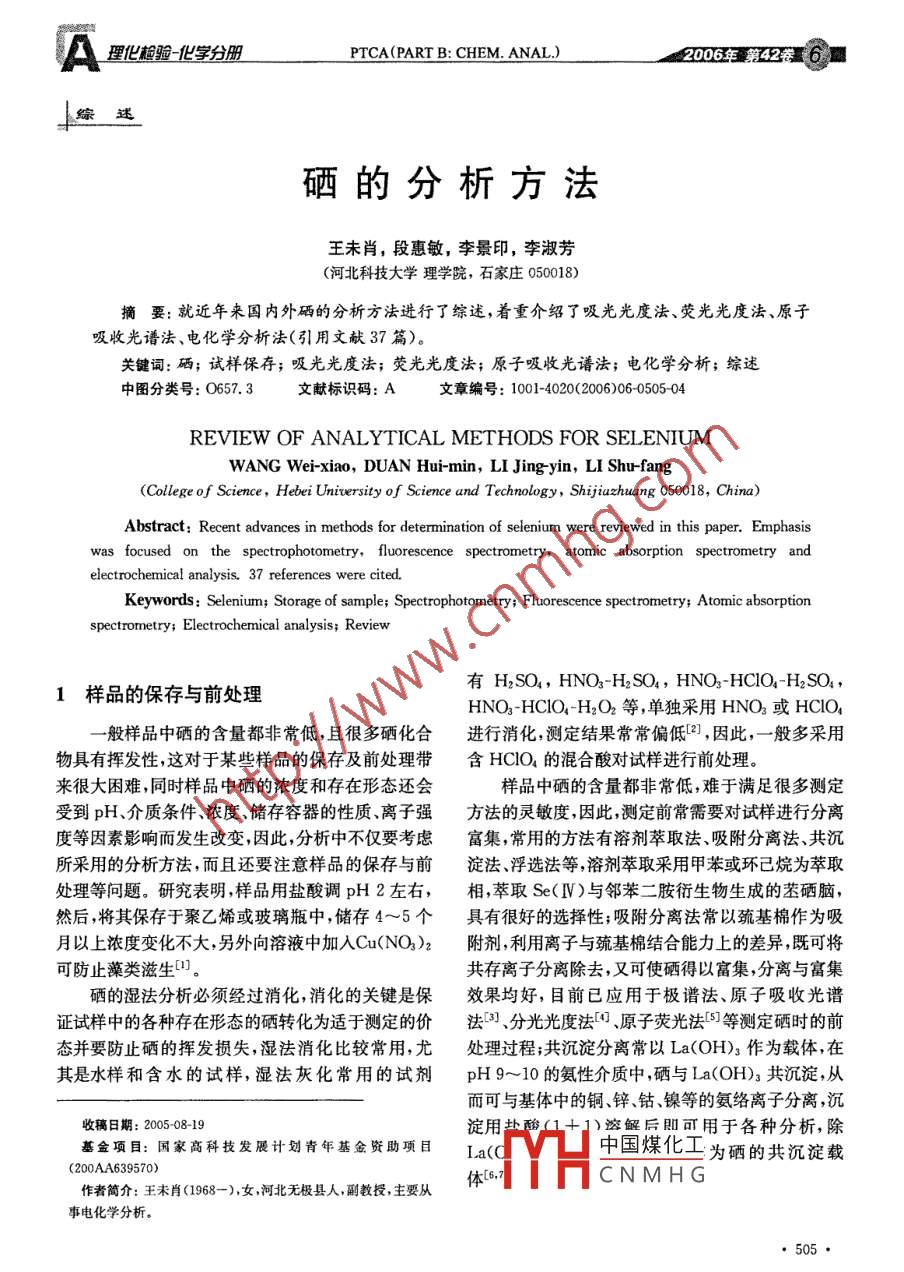 硒的分析方法