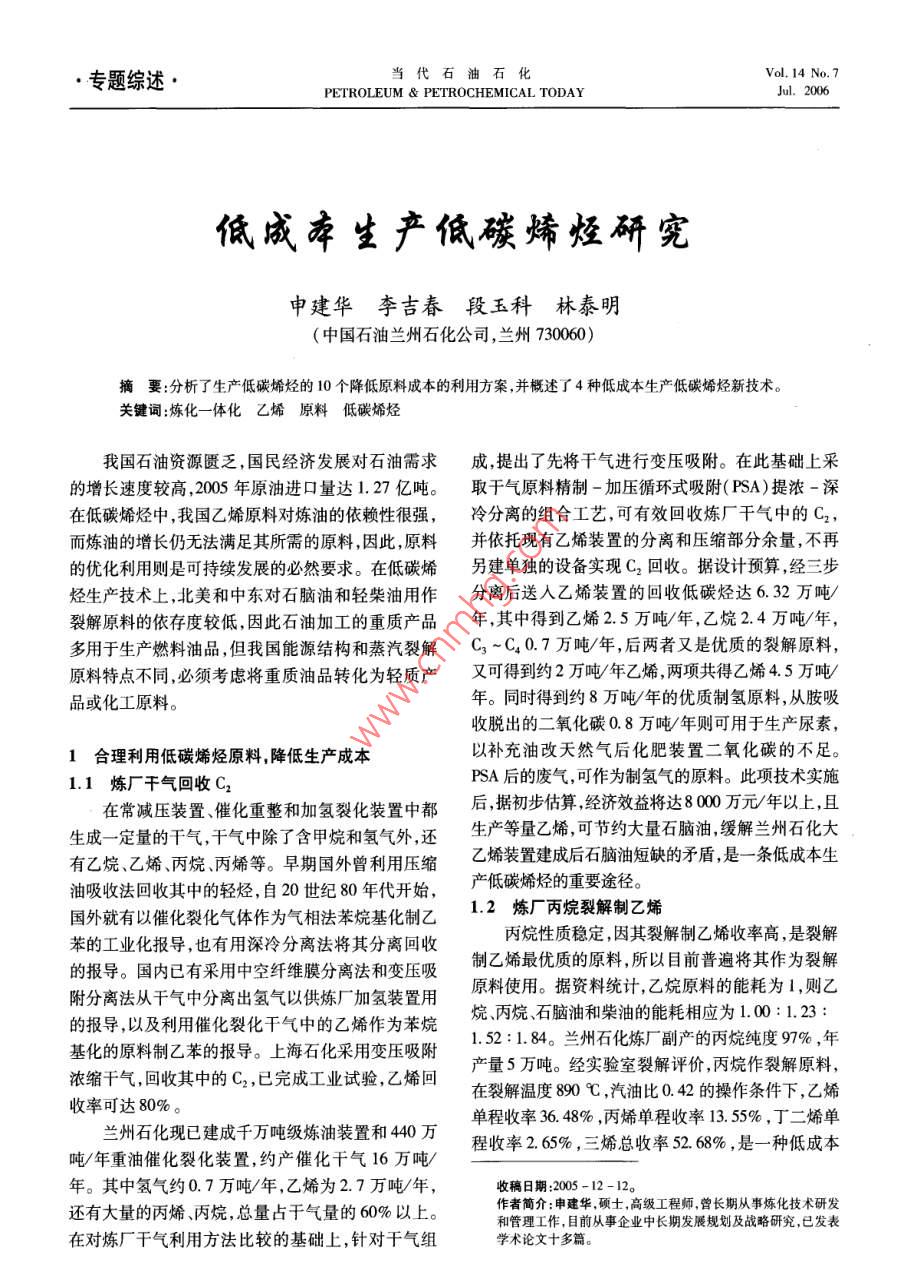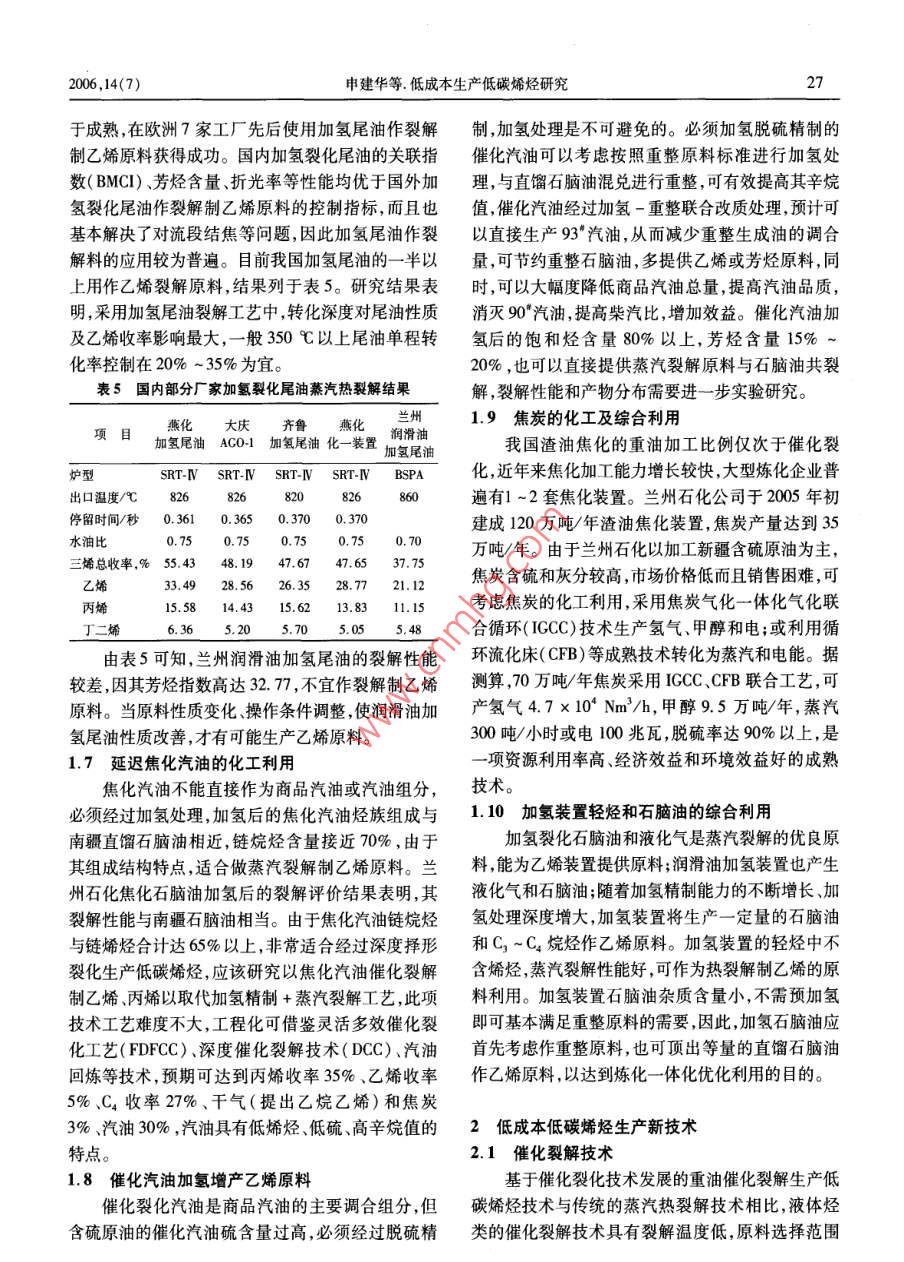 低成本生产低碳烯烃研究