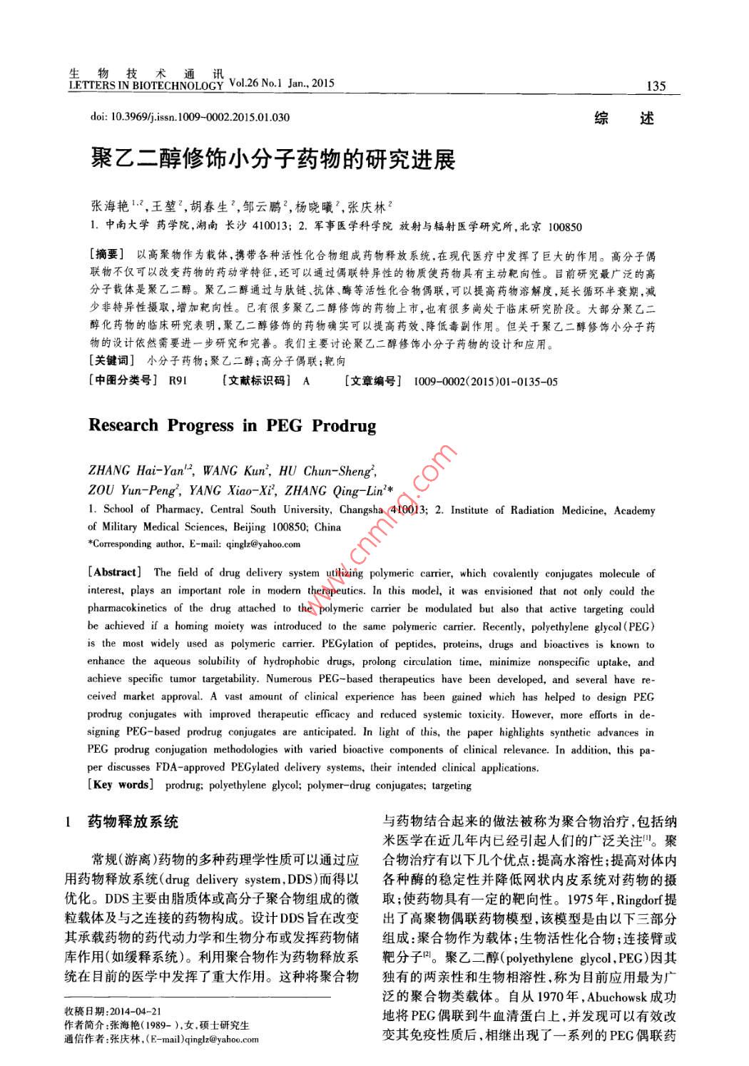 - 作者单位:中南大学药学院,军事医学科学院放射与辐射医学研究所