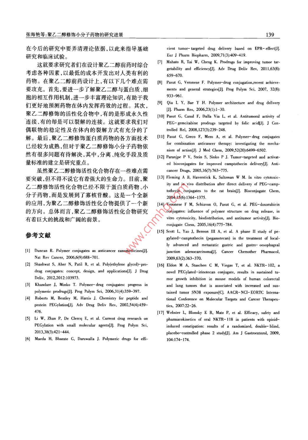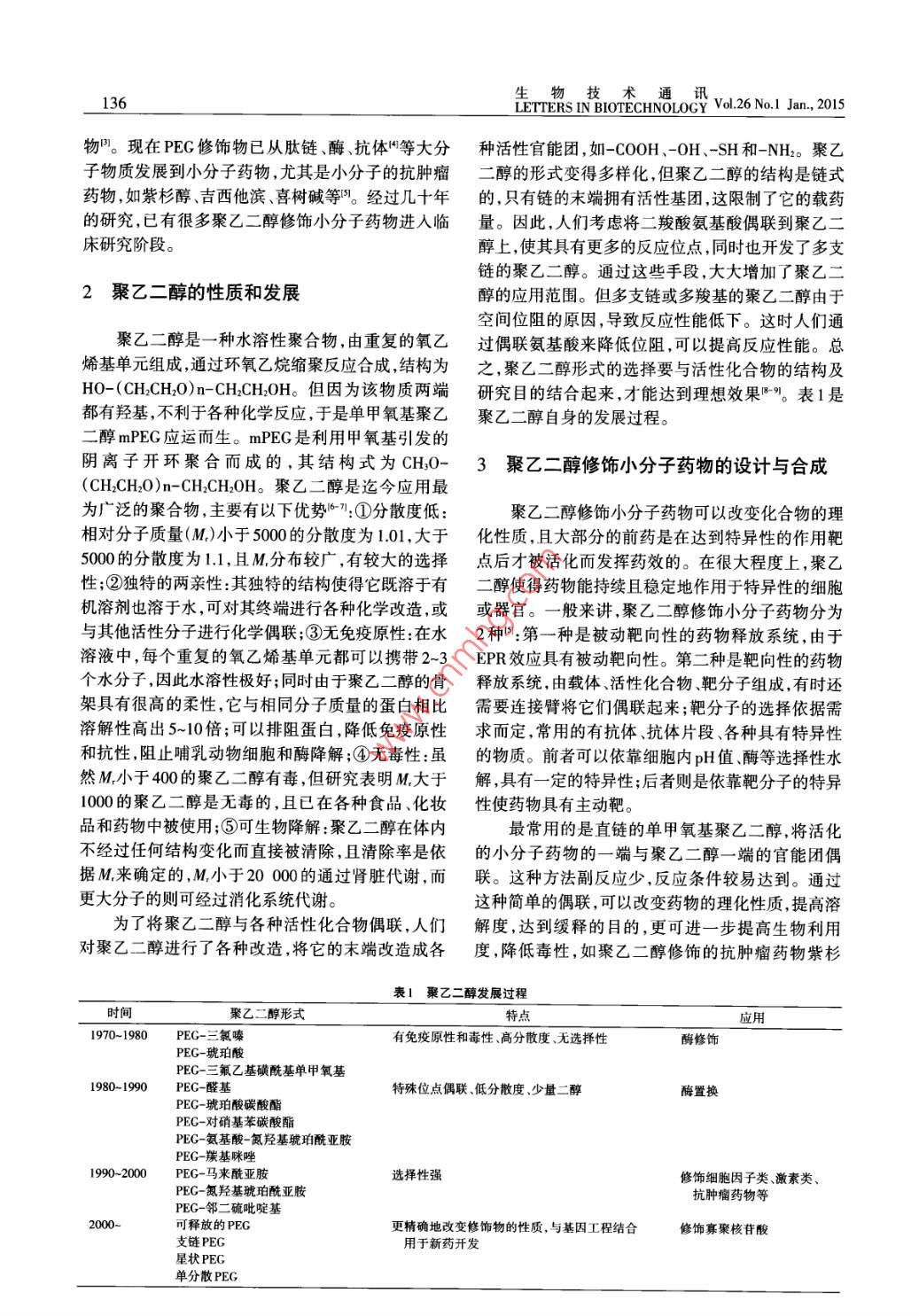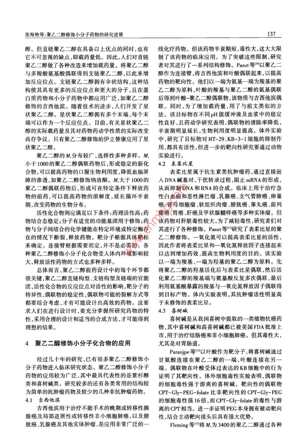 聚乙二醇修饰小分子药物的研究进展
