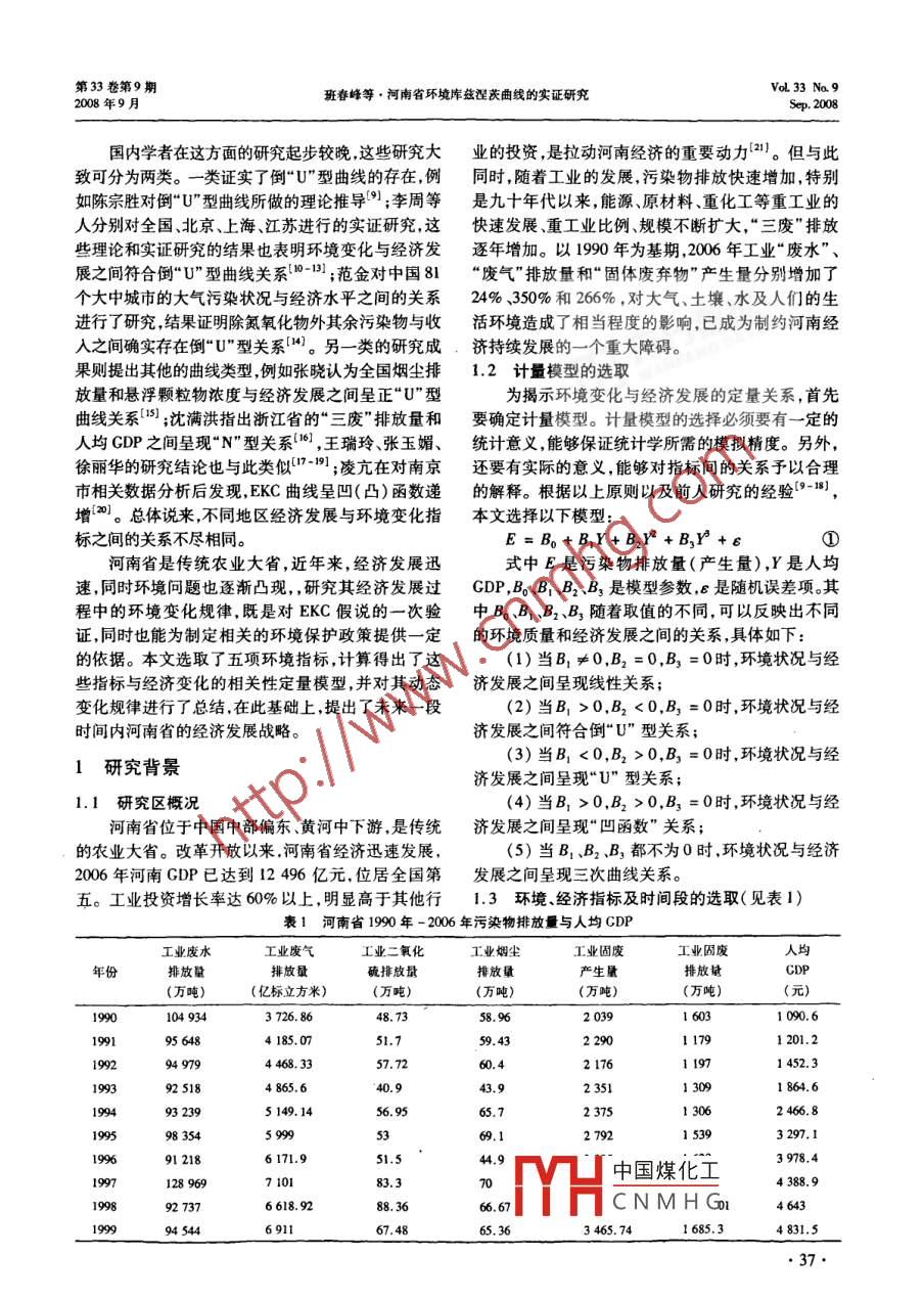 河南省环境库兹涅茨曲线的实证研究